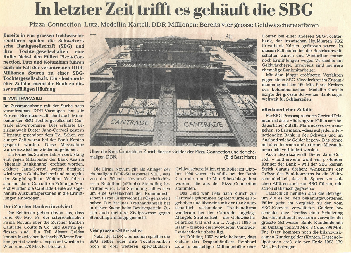 Nebst den Fällen Pizza-Connection, Lutz und Kolumbien führen auch im Fall der veruntreuten DDR-Millionen Spuren zu einer SBG-Tochtergesellschaft. Ein „bedauerlicher Zufall“, meint die Bank zu dieser auffälligen Häufung.